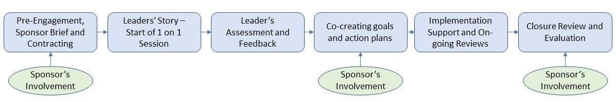 Once the coach, coachee, and sponsor are aligned, the coaching engagement typically unfolds over 8–10 sessions across 8–10 months.